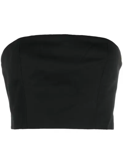 black cotton blend tube design strapless concealed rear fastening straight hem cropped