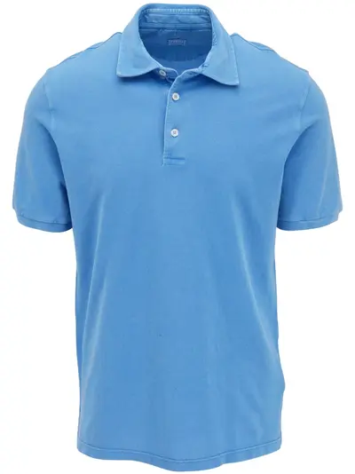 cornflower blue cotton piqué weave polo collar front button placket short sleeves straight hem