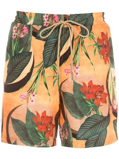 orange/multicolour tropical foliage-print drawstring fastening waist two side slit pockets rear flap pocket Be mindful to try on swimwear over your own garments.