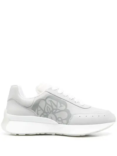 light grey calf leather logo print to the side logo-print tongue branded heel counter perforated detailing round toe front lace-up fastening chunky rubber sole