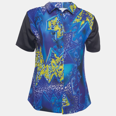 Versace Jeans Multicolor Printed Sateen Button Back Top S 779926 (голубой, lpn21860230)