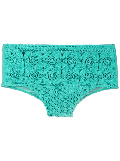 teal green stretch-design crochet knit mid-rise Be mindful to try on swimwear over your own garments.