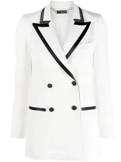 black/white contrasting trim classic lapels double-breasted button fastening long sleeves two front welt pockets