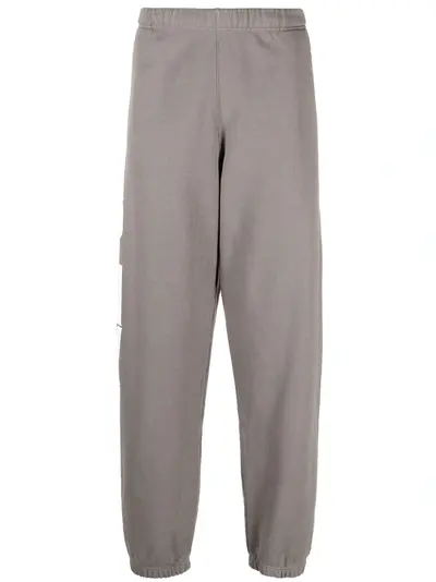 grey cotton logo patch to the rear logo print to the side elasticated waistband side pouch pockets elasticated ankles