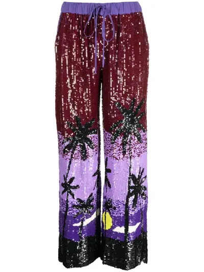 burgundy/multicolour sequin embellishment elasticated waistband drawstring fastening two side slash pockets straight leg