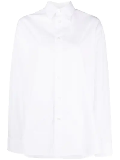 white cotton classic collar front button fastening extra-long sleeves buttoned-cuff sleeves side slit straight hem
