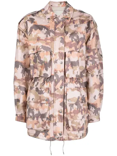 camel brown cotton camouflage print epaulettes storm flap classic collar front press-stud fastening long sleeves multiple cargo pockets