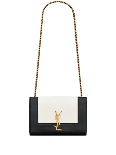 black/white leather signature YSL logo plaque chain-link shoulder strap foldover top with magnetic fastening main compartment internal pocket