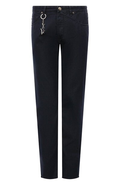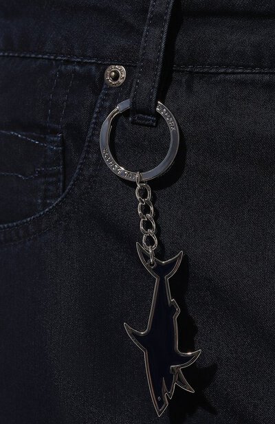 Универсальный темно-синий цвет и отсутствие потертостей адаптируют джинсы для образов разной степени сложности. Модели сшили из мягкого хлопка с добавлением прочного полиэстера. Брюки дополнили съемным брелоком в виде акулы из металла, покрытого черной глянцевой эмалью.
