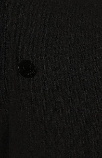 Черной укороченной куртке в стиле 1940-х придали современное звучание, украсив швы сзади металлическими скобами. Для пошива модели с отложным воротником мастера марки использовали мягкую шерстяную ткань. Легкий материал хорошо удерживает тепло, но не перегревает, а за счет стрейчевых волокон в составе лучше тянется и не мешает движениям.
