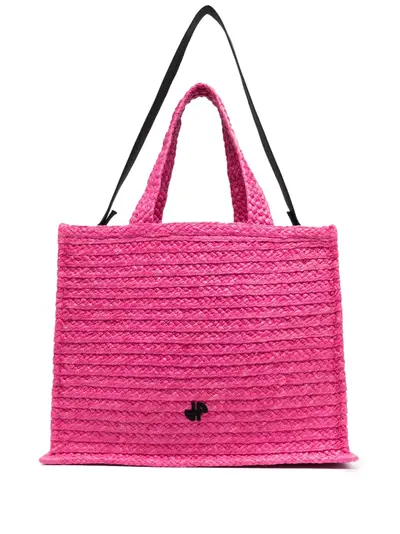 pink/black raffia logo patch to the front two top handles logo-embossed strap internal logo patch