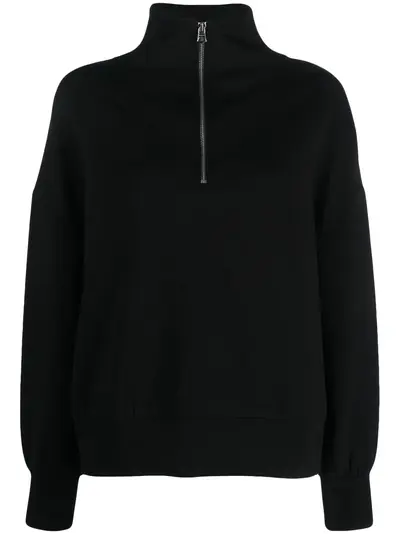 jet black stretch-design panelled design funnel neck short front zip fastening drop shoulder long sleeves elasticated cuffs and hem