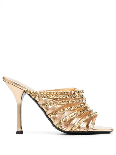 gold-tone calf leather crystal embellishment caged design slip-on style high heel