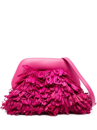 fuchsia pink straw detachable shoulder strap concealed magnetic fastening internal logo tag