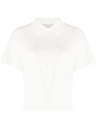 cream white stretch-design knitted construction crepe texture polo collar short sleeves ribbed hem