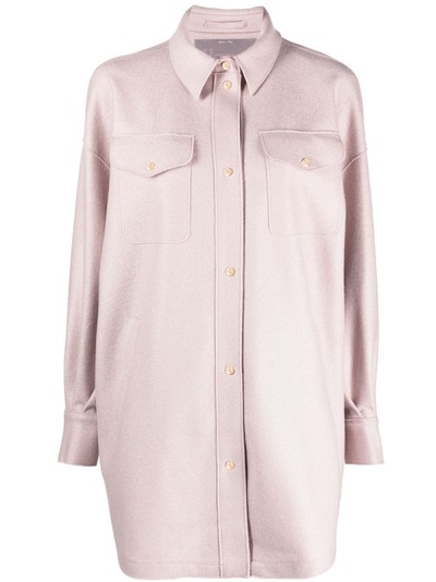 lilac purple virgin wool felted finish classic collar front button fastening two chest flap pockets two side slit pockets long sleeves buttoned-cuff sleeves curved hem