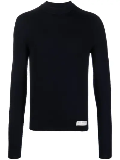 dark navy merino wool knitted construction crew neck long sleeves straight hem