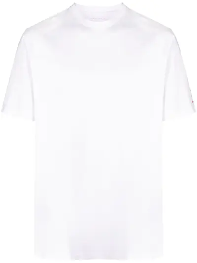 off-white stretch-cotton logo print at the sleeve graphic print to the rear crew neck short sleeves straight hem