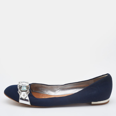 Giuseppe Zanotti Design Navy Blue Canvas Crystals Embellishment Ballet Flats Size 40.5 804591 (lpn22211948)