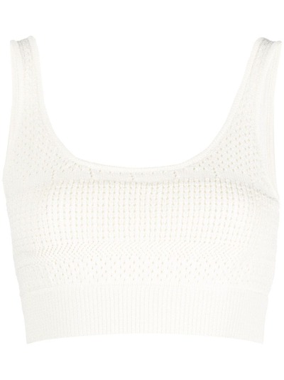 off-white knitted construction crochet knit perforated detailing scoop neck sleeveless straight hem cropped