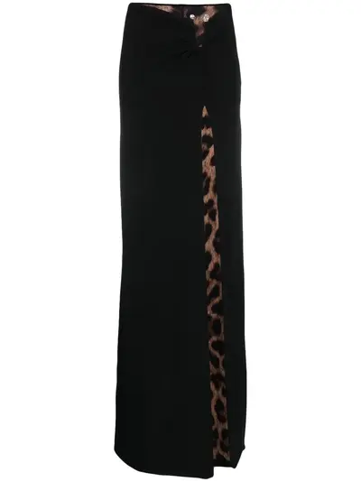 black stretch-cotton jersey texture ruched detailing crystal embellishment concealed side zip fastening leopard print lining front slit