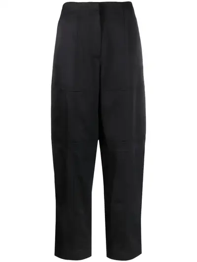 black silk blend straight leg low-rise concealed front fastening two side slit pockets