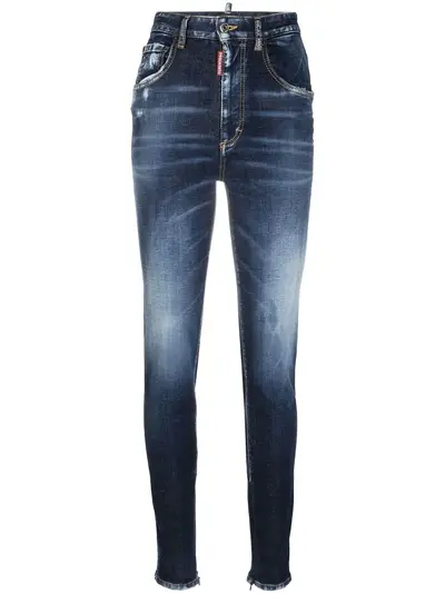 indigo blue stretch-cotton faded effect logo patch to the rear high waist front button fastening classic five pockets skinny cut