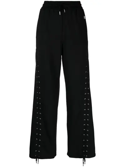 black cotton logo lettering lace-up detailing wide leg