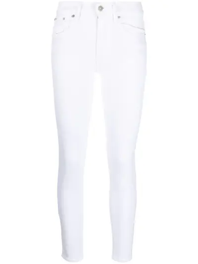 white cotton blend front button and zip fastening belt loops classic five pockets mid-rise skinny cut