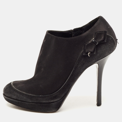 Dior Black Suede and Satin Bow Ankle Booties Size 38.5 816348 (чёрный, lpn22314171)