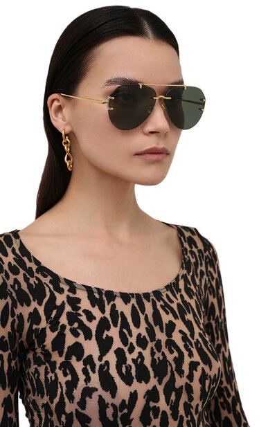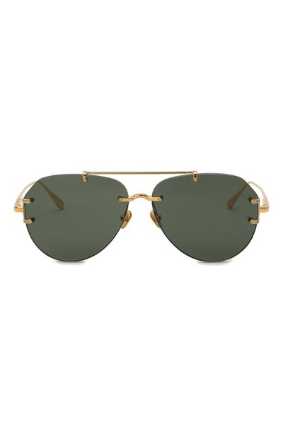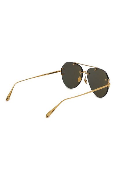 Тонкую безободковую оправу авиаторов мастера марки выполнили вручную из ультралегкого прочного титана. Каждую деталь искусно отполировали и покрыли слоем желтого золота, а крапановые зажимы декорировали мерцающим геометрическим узором. Однотонные угольно-серые линзы из устойчивого к царапинам поликарбоната обеспечивают 100% защиты от ультрафиолетовых лучей и отраженного света, не искажая оттенки.