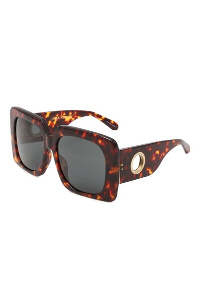 Утрированно крупная черепаховая оправа солнцезащитных очков добавит образу ретро-стилистики. Для изготовления аксессуара использовали легкий прочный ацетат, отполированный до глянцевого блеска. Модель с позолоченными люверсами на широких дужках дополнили темными линзами, на 100% блокирующими ультрафиолет и поглощающими блики.