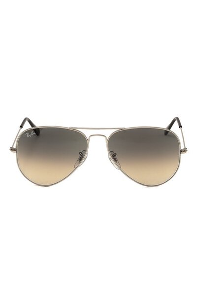 Солнцезащитные очки формы авиатор выполнили из полированного серебристого сплава, а заушники изготовили из черного прочного материала. Модель получилась настолько легкой, что почти не ощущается на лице. Аксессуар дополнили серыми градиентными линзами, которые оберегают глаза от вредного ультрафиолетового излучения.