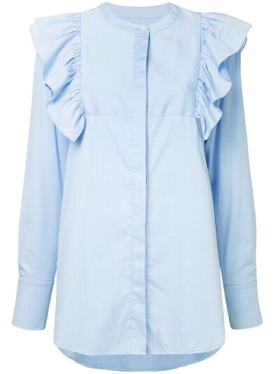 Sky blue cotton Signal shirt from MacGraw featuring long sleeves, a ruffle trimming, a straight fit and a curved hem.