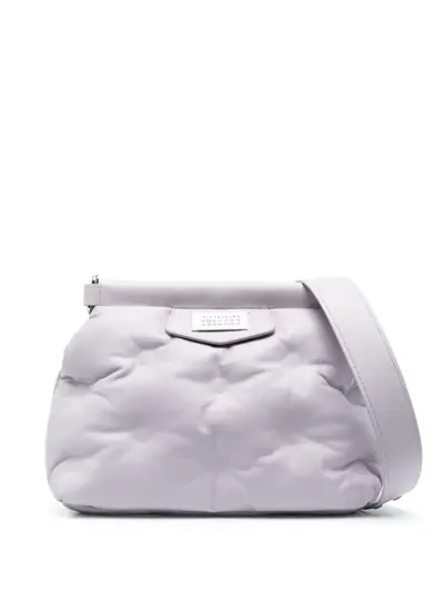 light purple leather quilted logo patch to the front adjustable shoulder strap magnetic fastening internal logo patch internal zip-fastening pocket