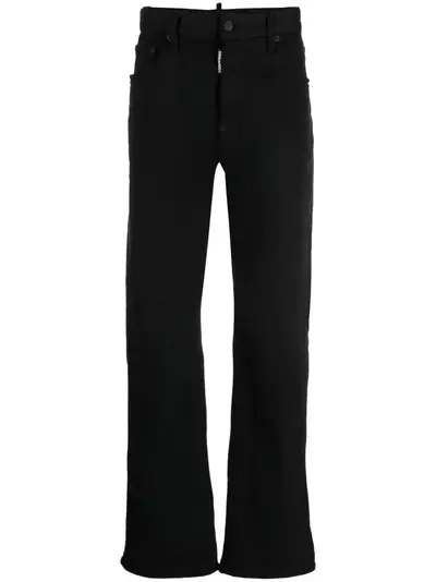 black stretch-cotton denim concealed front button fastening classic five pockets bootcut straight leg