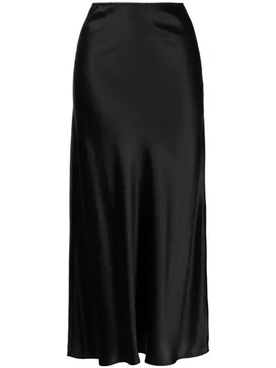 black silk bias cut A-line elasticated waistband flared hem ankle-length