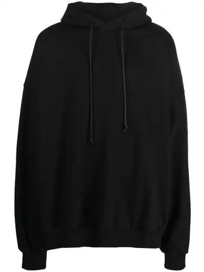 jet black cotton knitted construction embroidered logo at the chest logo print to the rear graphic print to the rear drawstring hood drop shoulder extra-long sleeves ribbed cuffs and hem elasticated cuffs and hem