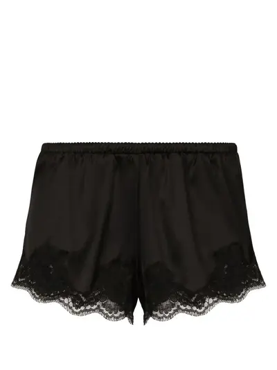 black silk blend satin finish lace detailing elasticated waistband scallop hem thigh-length Just a reminder that this piece must be tried on over your own garments.