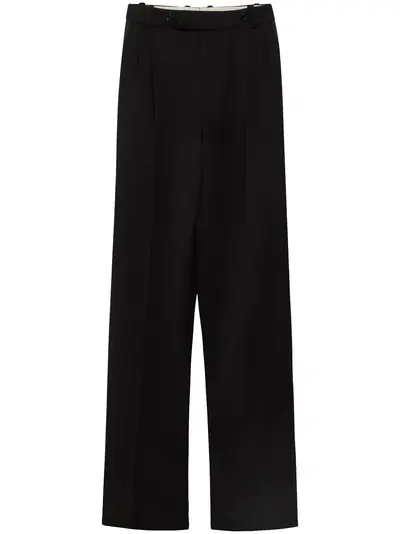 black wool mid-rise belt loops rear patch pocket two side slit pockets concealed fly and button fastening straight leg
