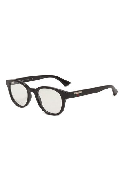 Для изготовления круглой оправы универсального черного цвета мастера марки использовали прочный ацетат, который почти ничего не весит и не боится случайных потертостей. Широкие лужки подчеркнули вставкой с выгравированным логотипом бренда и узором в виде красно-зеленой ленты Web.