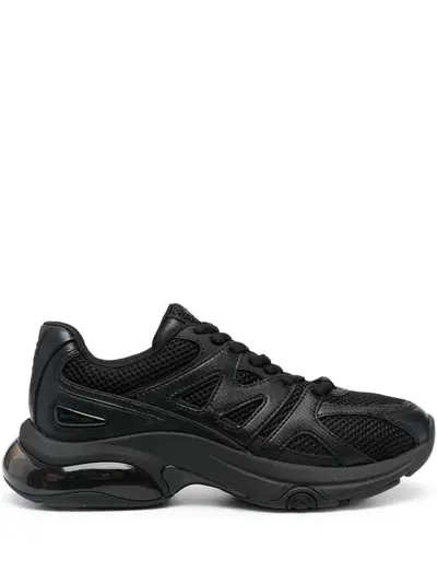 black calf leather panelled design mesh panelling front lace-up fastening round toe chunky rubber sole
