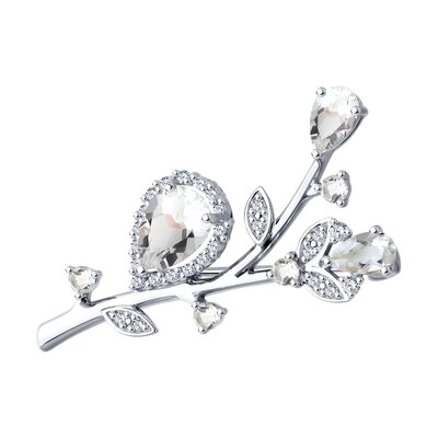 Брошь Sokolov из белого золота с бриллиантами и горным хрусталем 964723459 (lpn22482757)