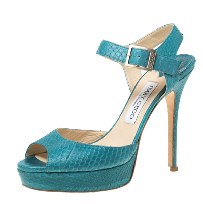 Keep it casual and chic with these snakeskin sandals. Embrace your unique side when you wear this pair of sandals that comes with a leather sole and high heels. These classic sandals by Jimmy Choo are a closet staple for any woman. Exhibit your impressive styling sense when you don these blue sandals.
