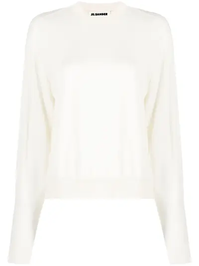 white virgin wool-cashmere blend knitted construction crew neck long sleeves ribbed cuffs and hem