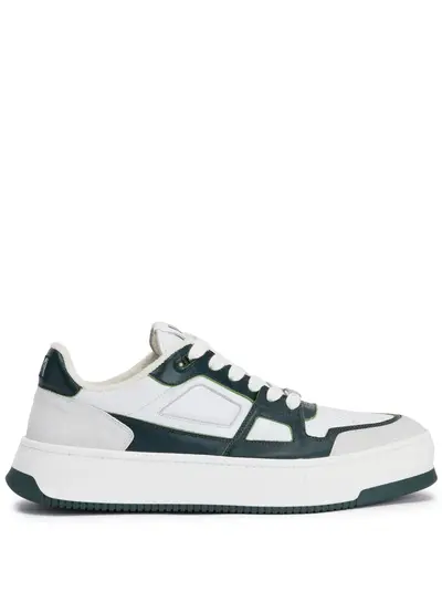 white/dark green leather logo patch at the tongue panelled design perforated detailing branded insole round toe front lace-up fastening flat rubber sole