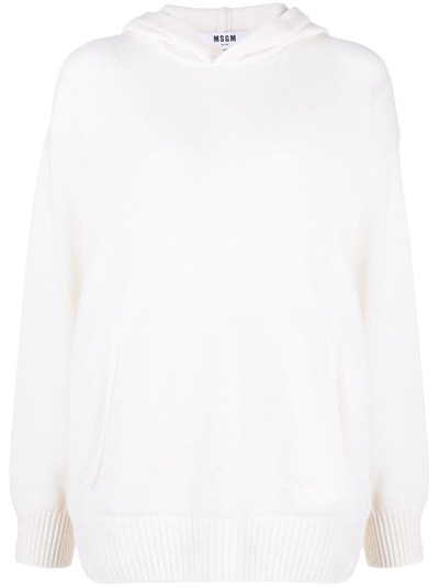 white wool-cashmere blend embroidered logo classic hood long sleeves ribbed cuffs and hem front pouch pocket straight hem