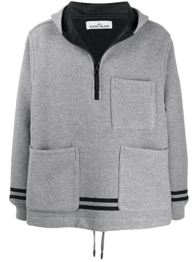 Italian in origin, cult streetwear icon Stone Island continues to champion contemporary menswear designs through the use of ground-breaking technologies heavily founded in tradition and innovation. This grey wool blend patch pocket hoodie from Stone Island features a drawstring hem, a striped trim and a half-zip placket.