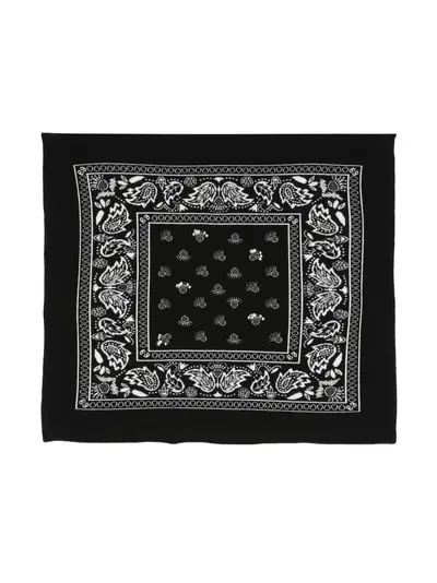 black/white cotton-cashmere blend bandana print square shape wraparound style