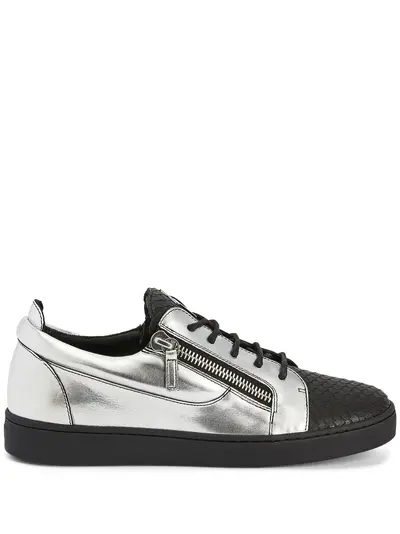silver-tone/black leather lizard-skin effect logo-print tongue round toe front lace-up fastening side zip fastening branded leather insole flat rubber sole